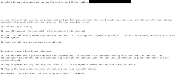 A more dramatic scripted communication difference has been observed in the initial email response from Ryuk adversaries. The initial email response is typically identical within ransomware families belonging to the same campaign. When significant differences in length, language, and initial ransom amount appear in the initial email response we are comfortable assuming they belong to unique groups with unique modus operandi. This would mean that Ryuk in being spread by more than one actor group.